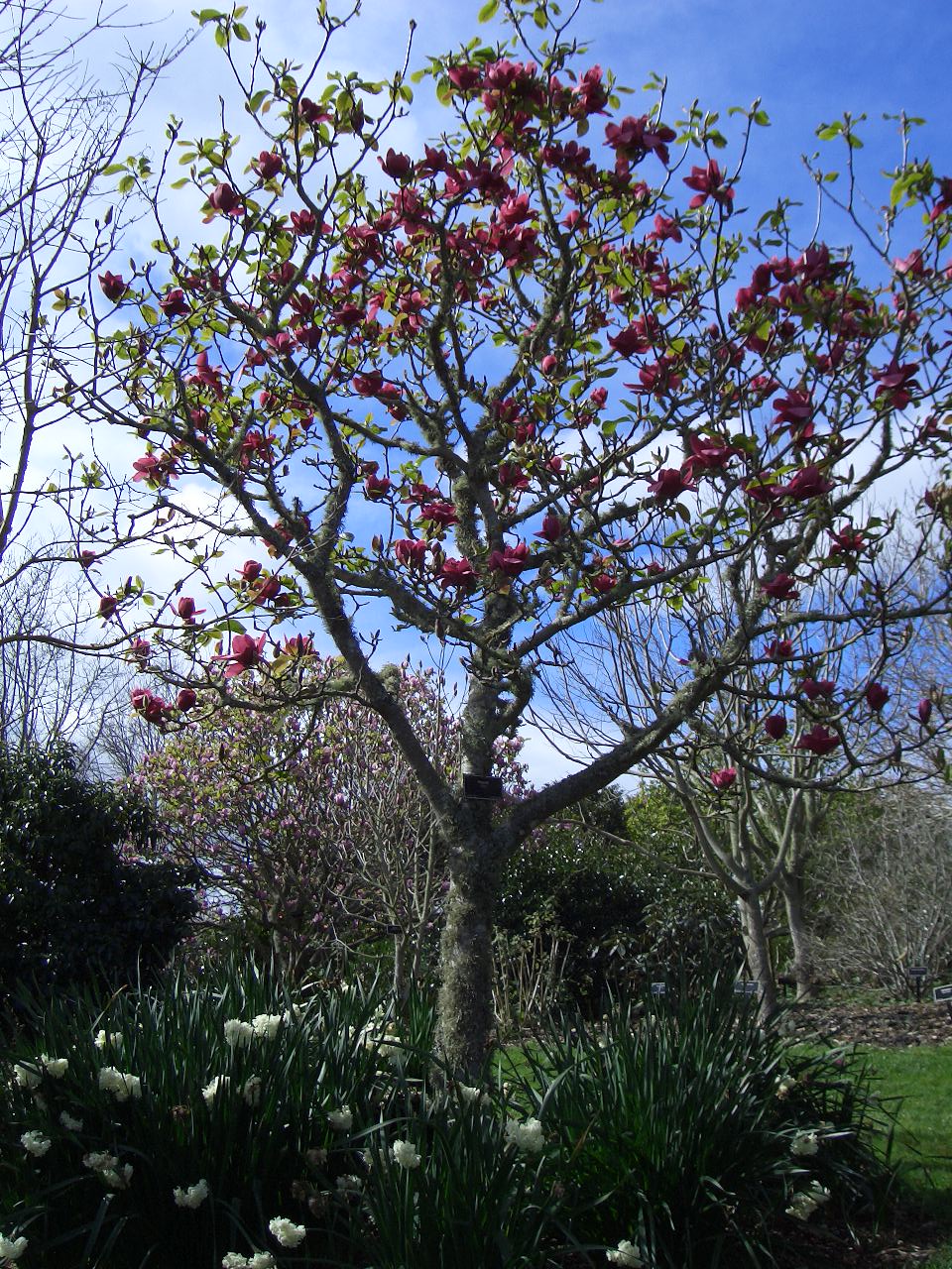 Large 'port wine' coloured flowers and again a prolific flowering deciduous magnolia well worth a place as a feature tree in the garden.